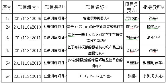 2017年国家级老员工创新创业训练计划(“国创计划”)项目