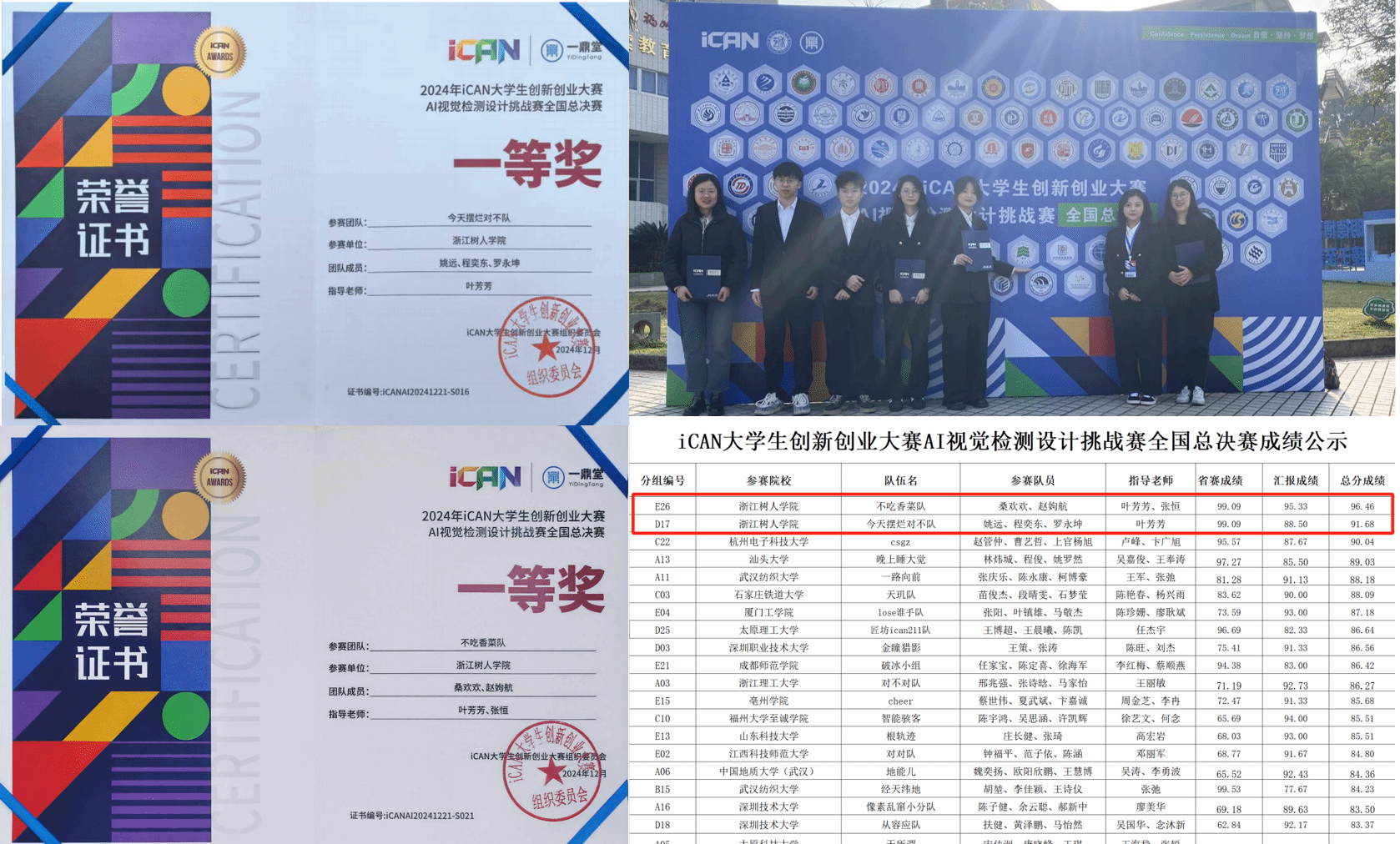 近日,由iCAN老员工创新创业大赛组委会主办的2024年iCAN大赛AI视觉检测设计挑战赛全国总决赛在福州刚刚落下帷幕。公司智慧康养机器视觉微专业的同学们在叶芳芳、曹曙桦等老师的精心组织和指导下,表现优异,在全国974支参赛队伍中脱颖而出,以总分排名第一和第二的好成绩,荣获国家一等奖2项。10月以来,公司选拔了11支队伍,在搭建检测单元、优化视觉算法、规划运动轨迹等方面精心打磨。在浙江赛区竞赛中,荣获7项一等奖和4项三等奖的佳绩,其中2组队伍顺利晋级全国总决赛。在全国总决赛答辩环节,两位队长清晰阐述了项目的技术亮点,深入剖析了视觉检测算法的设计和优化,并结合实际工业案例进行精准演示,赢得了评委的高度认可。答辩现场气氛热烈,每位队员发挥各自所长,精彩应对每个提问,展现了公司学子在人工智能和机器视觉领域的学术深度与实践能力。