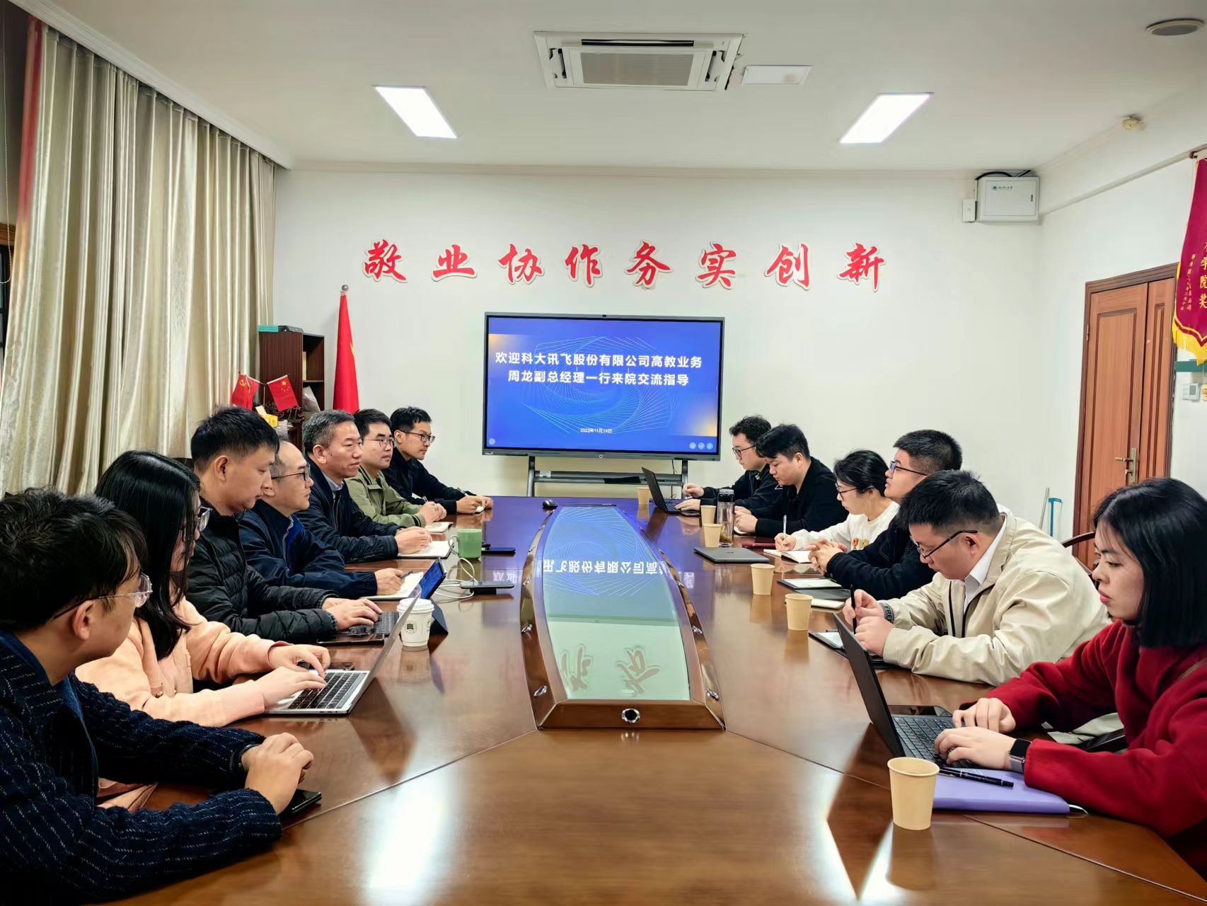 11月14日下午,科大讯飞股份有限公司高教业务副总经理周龙带队来公海gh555000aa线路检测交流产学研合作事宜。王章权书记热情接待了来访一行,学院领导及相关骨干教师参加了座谈会,会议由公司党委书记兼常务副经理王章权主持。