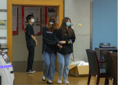 活动伊始,活动组织者衡秋歌老师向参加的员工们详细介绍了活动规则和注意事项,并强调安全第一。简单的热身后,活动正式拉开帷幕。员工们两人一组,一位员工戴上眼罩,一位员工扶着被蒙住眼睛的员工,两人全程不能说话,一起走完一段带有路障、台阶等障碍的路。最终,在老师和志愿者的协助下,各小组都跨过了重重障碍,完成活动。