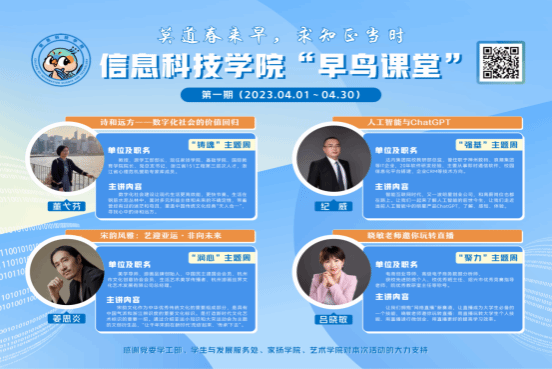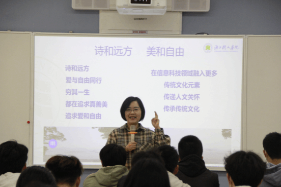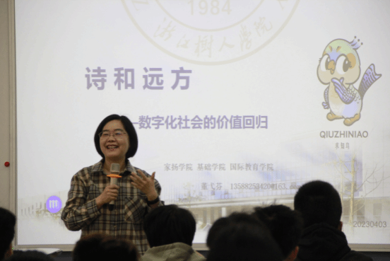 第1期“铸魂”主题周邀请到了校家扬学院、基础学院、国际教育学院经理董弋芬教授,董经理以“一个地方、两张照片”为切入点,深入浅出的讲授了数字化社会的价值回归。习近平总书记在党的二十大报告中指出:“坚持和发展马克思主义,必须同中华优秀传统文化相结合。”中华优秀传统文化的价值观念同科学社会主义价值观主张的高度契合性,为马克思主义基本原理同中华优秀传统文化相结合提供了前提条件和重要基础。借此董经理倡导同学们要将爱与自由同行,追求真善美,在信息科技领域融入更多传统文化元素。