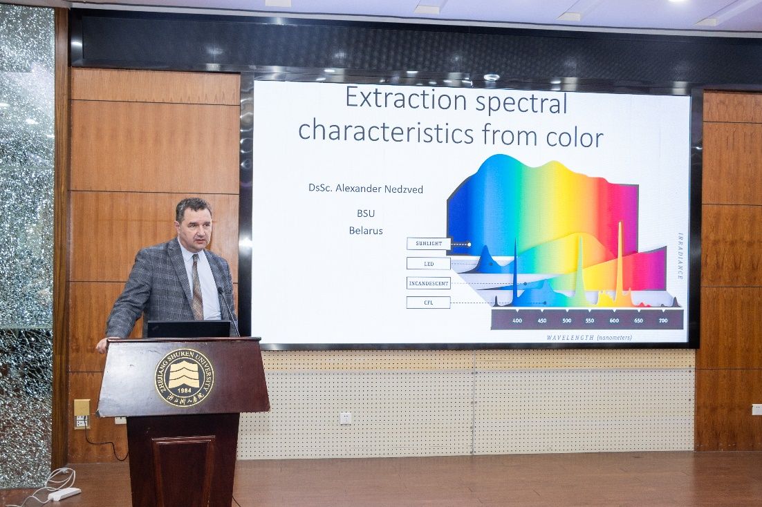 Sergey Ablameyko院士,Alexander Tuzikov院士、Vladimir Golovko教授、Alexander Nedzvedz教授、Rykhard Bohush博士、陈超祥教授、白直灿副教授、杨科大博士、孙瑜亮博士与刘征涛博士分别就自己在智能计算彩色图像中光谱的特征提取、在人脸特征识别与重建、深度学习在图像处理中的非监督学习方法的研究、卷积神经网络应用在视频监控系统中个体的再识别、深度学习解决生物医学问题、深度学习在CT影像的肺部肿瘤细胞及外周血管的三维重建、人工智能辅助小分子药物早期发现等领域的研究学术报告。期间双方展开了充分的交流与讨论。