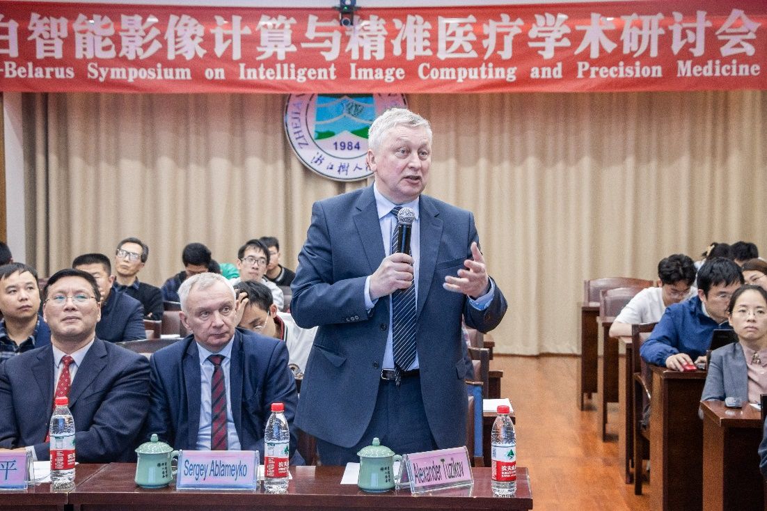 Sergey Ablameyko院士对学术研讨会做了总结。他高度肯定了遥感国际合作基地组织的本次学术交流会。他指出,本次专家学术研讨会是阔别三年后双方第一次在杭州重逢。由于疫情的影响,三年来大家没有如此近距离的交流。虽然未能相见,但双方也做了很大的努力,打破时空的阻隔,进行了多次的线上交流和合作攻关,取得了丰硕的科研成果。而此次的面对面的学术研讨会,让双方的感情进一步加深,交流更为有效。学术报告非常精彩,有幸看到更多青年学者围绕着“智能影像计算与精准医学”为主题展开广泛而深入的研究,许多理论和应用得以创新,对参会者掌握领域研究前沿、交流研究成果、拓展研究思维等带来了益处。10个报告中有不少是双方合作的科研成果,希望后续双方能展开更广更深的合作。他欢迎不久的将来大家能到明斯克相聚。