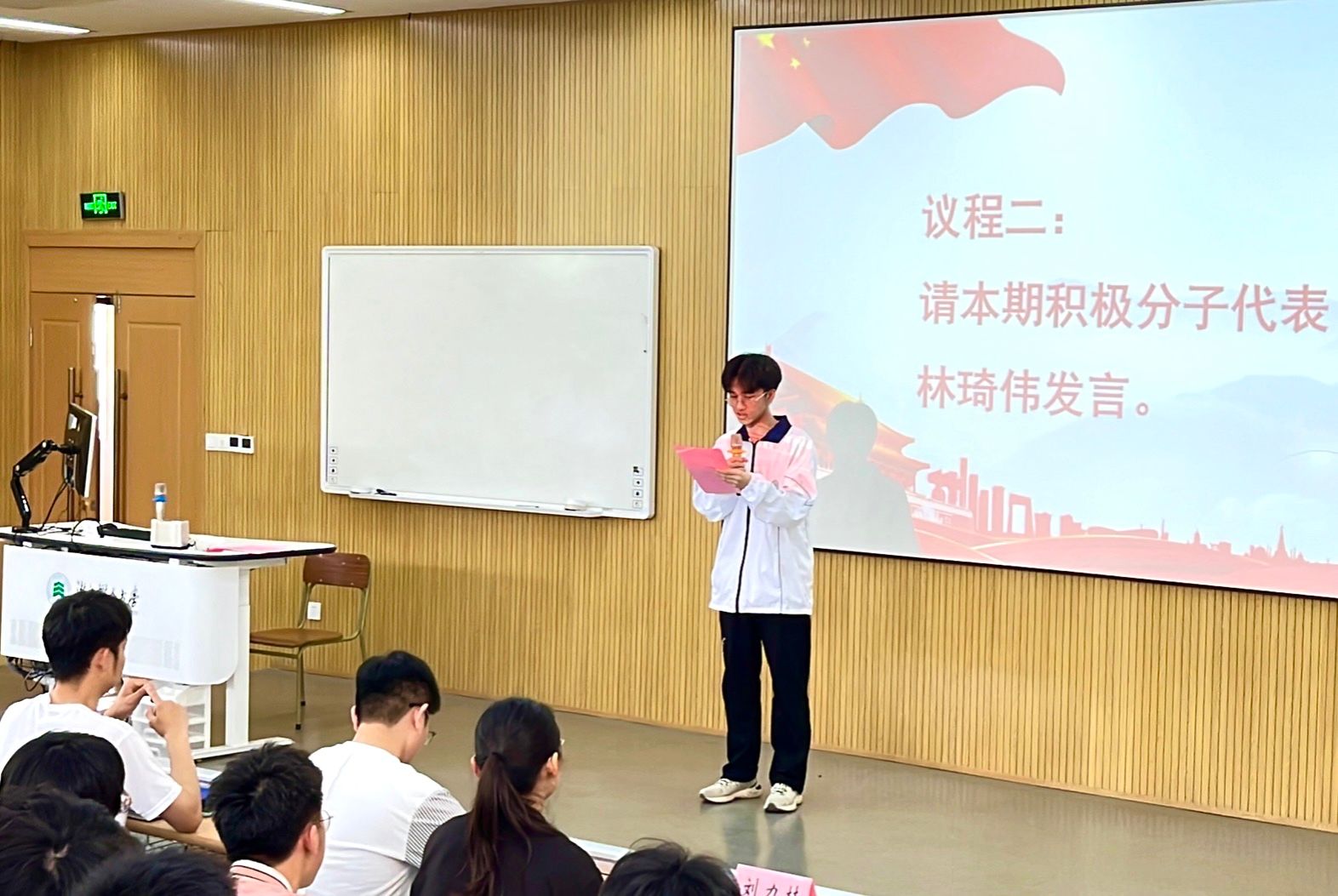 开班第一阶段,第九期入党积极分子代表林琦伟上台发言,表明了本期积极分子“吾辈青年自当壮志凌云,挂云帆,济沧海”的决心,会始终严格要求自身,为全院树好标杆、提供示范、作出表率。