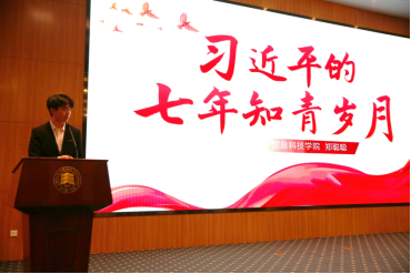 信息学院秦虞皓通过习近平总书记推荐的著作《浮士德》,说明了生命只有不断追求,才能实现人生的理想和价值。郑聪聪分享的《习近平的七年知青岁月》,让同学们认识到了一个自强不息,笃行载物的习近平总书记。继续教育学院的张政以《摆脱贫困》仔细分析了如何实现脱贫攻坚战,号召新时代老员工应当做一个有理想,敢担当的新青年。