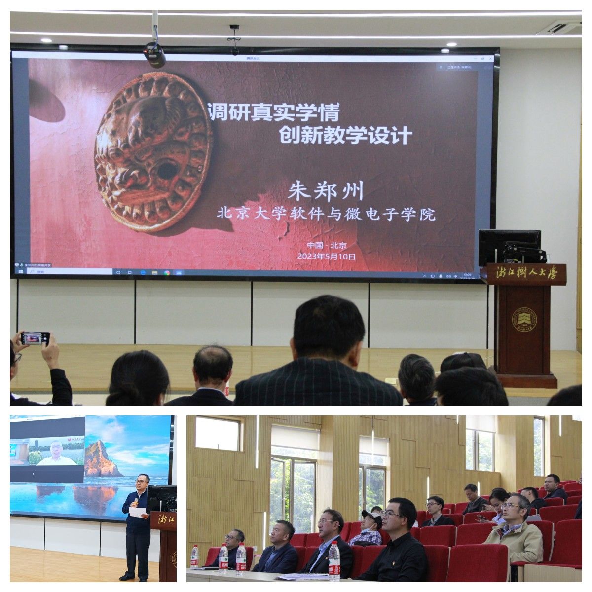 在学校轰轰烈烈推行“课堂教学质量月”活动背景下,为推动学院课堂教学改革,引领和带动教师进行教学模式和教学方法的优化革新、提升课堂教学改革驾驭能力,5月10日下午,公海gh555000aa线路检测通过校教学质量监控中心邀请到了北京大学软件与微电子学院朱郑州副教授,通过线上讲座的方式为全体专任教师作了题为“调研真实学情 创新教学设计--以软件工程为例”的专题讲座,公海gh555000aa线路检测副经理张登辉主持讲座,全院教师到场聆听。