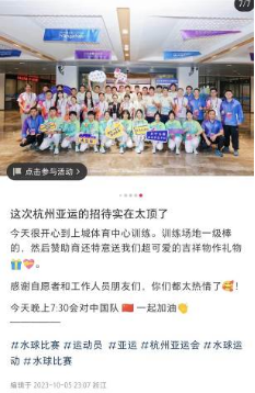 随着亚运会水球项目最后一场赛事圆满收官,信息学院13名“小青荷”顺利完成亚运赛事期间的所有志愿服务工作。满眼湖山绿,青荷立于中。16个训练日,72场次的训练任务,每一位信息“小青荷”用温暖的服务为亚运保驾护航,用热情的微笑欢迎运动健儿,用真诚的服务保障赛会运行,把爱播撒到杭州这座亚运之城。他们在训练组织运行、竞赛综合事务、媒体运行、市场开发/票务等多个业务领域挥洒汗水,累计服务时长2200余小时,接待运动员超1440人次,圆满完成杭州亚运赛会志愿服务工作。