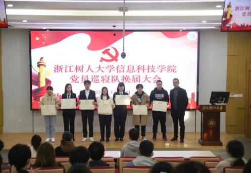 随后,主持人宣读“党员巡寝队”离任名单,丁书记为离任队长颁发聘书并合影留念。第一届“党员巡寝队”总队长林正潮总结上一年工作并简单介绍了“党员巡寝队”工作职责及工作规范。接着,主持人宣读了新任党员巡寝队队长名单,辅导员徐佳锋老师为党员巡寝队代表授牌,并亲手给他们戴上工作牌。第二届党员巡寝队总队长夏小天代表“党员巡寝队”全体成员发言,他表示我队将认真执行宿区自律管理办法,坚持“全心全意为同学服务”的原则,以打造温馨寝室为目的,以传承先锋信息精神为导向,以检查监督为抓手,以说服教育为手段,来全面提升员工自律意识,促进学院文明寝室建设。对宿区作息情况进行检查上报,对违纪行为视情况进行制止、劝导、说服、指正,并积极配合学院宿区管理工作,促进员工宿区的文化建设,创建良好的寝室氛围!最后,全体成员合影留念。