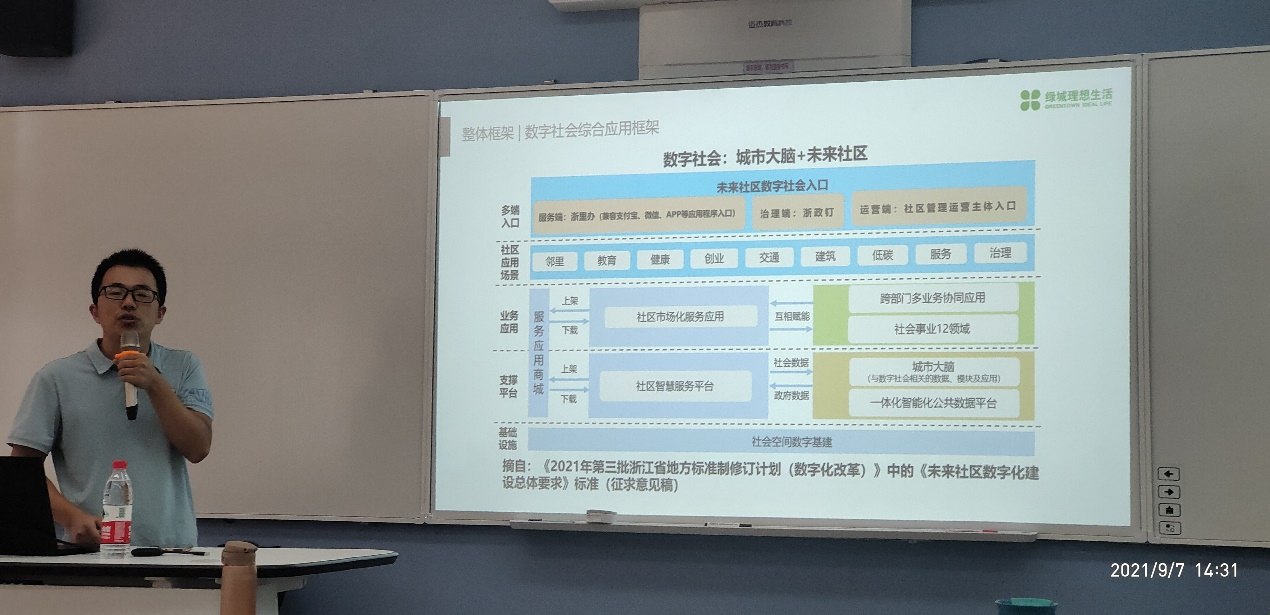 9月7日下午,公海gh555000aa线路检测邀请绿城未来数智科技有限公司副总经理周志湖来院为学院骨干教师作有关“未来社区数字化平台主要建设内容及关键技术”讲座,公司全体博士及部分教师参加。讲座由公司党委书记王章权教授主持。
