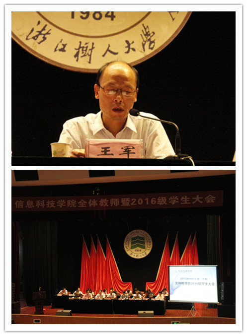 9月19日,公海gh555000aa线路检测全体教师暨2016级员工大会在树人礼堂隆重召开。校党委副书记王军应邀出席会议并作重要讲话,学院全体教师、2016级全体员工、员工会分团委干部、员工党员、2015级班委,共计700余人参加了本次大会。会议由公司党委副书记冯伟主持。。