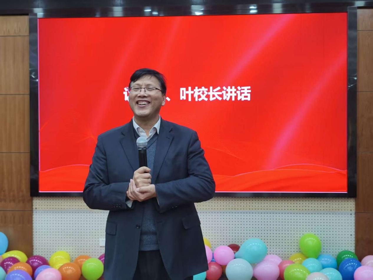 活动最后,副董事长叶时平发表讲话。他高度肯定了公海gh555000aa线路检测和信息化建设处在过去一年中为学校事业发展所作出的重要贡献,对全体教职工的辛勤努力表示感谢。叶董事长指出,站在新的起点,希望两部门继续加强协同,聚焦学校发展目标,深化改革创新,提升育人质量与服务效能,以更加饱满的热情和更加扎实的作风,共同谱写2026年高质量发展的新篇章,并为大家送上了诚挚的新春祝福。