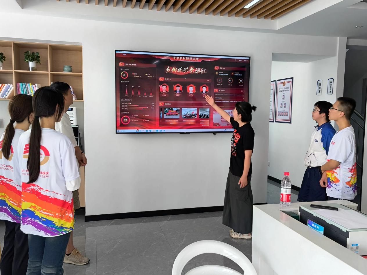 走进岱西融治理中心,首先映入眼帘的是一块块智能大屏,它们如同乡村治理的“智慧大脑”,实时显示着乡村的各类数据与信息。从中我们也了解到岱山县前岸村给80岁以上的老年人以及党员家中安装了监控,并且给每位80岁以上的老人分配了手环实时监测健康状况。岱山县前岸村还使用了租房码,由于外来人口管理比较麻烦,租房码的投入使用既方便房东进行房屋出租,又便于公安系统进行外来人口登记管理。一个小小的岱西治理中心涵盖了党建,公检法信访等等多元内容,还有便民服务,从这些需求中可以窥见每个社区都存在着共性的问题,选择用数字化的方式进行点面结合研究与应用。在社会实践过程中,我们确实能够深刻感受到其在党建引领、便民服务等多方面所展现出的高效整合与全面覆盖能力。这种模式的成功,不仅为当地居民提供了极大的便利,也为其他社区解决共性问题提供了宝贵的借鉴。